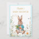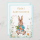 Este Peter, o design de coelho, é perfeitamente personalizável. Frente: (Nome) Chá de fraldas Voltar: Detalhes do convite para personalizar.
