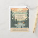 Montanhas de pinheiros com cabanas e pôr do sol - convite facilmente personalizado para o seu evento!