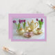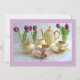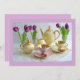 A bela escala de lavandas deste convite complementa esta imagem fabulosa. Serviço de café da china em limão, cor-de-rosa e ouro e tulipas roxas. Um convite incrível para tantas ocasiões, personalize com suas próprias palavras.