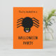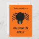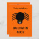 Este convite à festa assustador do Dia das Bruxas apresenta uma aranha preta assustadora com oito pernas peludas, olhos amarelos com grandes pupilas pretas e sua boca aberta mostrando suas presas. Há texto preto personalizável no verso, permitindo que você personalize este convite.