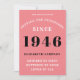 For those born in 1946 and celebrating their birthday party we have the ideal birthday invitation card. The pink background with a white and black design is simple and yet elegant. Easily customize the text to the front and the rear of this birthday invitation card using the template provided. Part of the setting standards range of cards, party supplies and gifts.