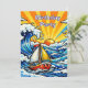 Personalized birthday party invitations with a cute nautical pop art oceanic theme. Waves, a sun, sailboat and a shark blue, yellow and red pop art style graphics. Add party info in the personalize area. Awesome invitations for a maritime, nautical or oceanic birthday party for a little boy!