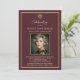 Personalized old money burgundy funeral invitation with photo and service details. Editable in the Zazzle editor.