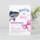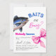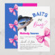 Elegante O que o Bebê vai pescar com o tema Isco ou Arcos Pensados Gênero Revelam Convite com arco rosa-d-água e peixe azul. Produtos correspondentes que você pode encontrar na coleção.