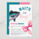 Elegante O que o Bebê vai pescar com o tema Isco ou Arcos Pensados Gênero Revelam Convite com a cor d'água, arco rosa e peixe azul verde. Produtos correspondentes que você pode encontrar na coleção.