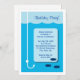 O cartão de convite à pesca de alto nível tem uma linha de pesca e anzol em água do mar azul com três peixes nadando em direção a ela. Este convite pode ser utilizado para uma festa de aniversário ou qualquer outra ocasião. Personalize com seu próprio texto. © Manhã 6
