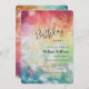 Convite de aniversário. Uma pintura de abstrato usando pinceladas expressivas grossas com muito movimento e movimento. Muitas tintas pesadas em azul, amarelos, vermelhos, laranja e verde. Um estilo artístico e criativo. Personalize com os detalhes do seu próprio partido.