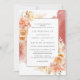 Aprecie seu convidado com este elegante e único convite para casamento com elementos florais de cor aquosa refinados em uma bela mistura de pêssego, laranja, rosa pincelado, coral empoeirado e matizes de champanhe de creme mostrando seus detalhes de casamento e delicada mancha aquática em cascata em tons de ferrugem. Formulação formal de convite com os nomes dos pais. O mesmo design sem nomes de pais também está disponível. Capacidade de editar o design usando a ferramenta design, usando o botão no final das caixas de texto modelo e fazer alterações na posição do texto, no estilo da fonte ou no tamanho. Voltar com mancha de cor de água em cascata. NOTA: SE VOCÊ PREFERIR ESTE CONVITE COM A PARTE TRASEIRA EM BRANCO, poderá fazer essa alteração seguindo estas etapas fáceis: clique no botão azul "Editar Usando a ferramenta Design", localizado no final das caixas de texto modelo. Em seguida, na camada "traseira", adicione de "elementos" no menu à esquerda, um quadrado. Arraste os cantos quadrados com o rato e faça-o realmente grande cobrindo as costas inteiras. Em seguida, mude a cor do quadrado para branco no menu à direita. Finalmente, clique no botão "concluído" no canto superior. Na moda e design elegante com flores delicadas e detalhes da grama de pampas. Parte de nossa "Coleção de Laranja de Pêssego e Arrugem" com uma variedade de produtos de coordenação disponíveis. Visite toda a extensão desta coleção em: https://www.zazzle.com/collections/peach_floral_delight_and_rust_orange-119930026374948611