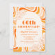 Flor retrô com quadro de arco em linhas onduladas de laranja e pêssego, convite de aniversário. Pode ser personalizado para qualquer idade!