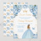 Este elegante e glamouroso e doce convite de 16 anos apresenta uma bela princesa com cabelo louro num vestido azul claro de bola. O texto combina o script manuscrito e as fontes sans serif modernas para um aspecto elegante e sofisticado. Os arranjos florais, borboletas e confete de ouro criam a mistura perfeita de rústicos e quicos. Gráficos por www.etsy.com/uk/shop/SunflowerDayLove