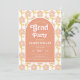 Convite Pêssego retrô e flores amarelas da década de 70 Gr