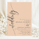 Convite Pêssego Suave Elegante Script Caligrafia Casamento