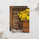 Convide os convidados para celebrar a recém-casada e os noivos na manhã após a cerimônia de casamento com o charmoso Convite de Café da Manhã Pós-Casamento Country com Balde de Madeira e Margaridas Amarelas. Este convite casual, porém sofisticado, para o Desjejum ou Almoço Pós-Casamento em estilo rústico chic apresenta uma fotografia floral digitalmente aprimorada de um balde de madeira cheio de flores de margarida amarela e um fundo de madeira de celeiro marrom desgastado.