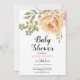 Pêssegos, flores de cacto de aquarela e primavera suculento e convite para chás de fraldas florais neutros de verão. Apresenta flores de cacto de pêssego e folhas verdes. O dorso é de cor sólida de pêssego.