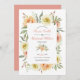 Pessegueiro de flores de aquarela floral convite de casamento floral. Este belo design inclui um quadro floral feito de pêssego, coral rosa e flores brancas e folhas verdes suculentas e seu texto. Os nomes estão na tipografia de scripts. O dorso é de cor sólida de pêssego-coral.