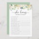 Quem sabe a melhor mãe? Jogo botânico pálido e divertido, que inclui moedas brancas e marfim, cor d'água, folha verde e dourada e sotaques dourados. Este elegante cartão de jogo de adivinhação de chá de fraldas floral é perfeito para chás de fraldas de primavera e inverno.