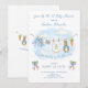 Uma entrega encantadora do Jardim McGregor! O convite apresenta uma linhagem de cor-d'água doce pendurada no centro, exibindo orgulhosamente itens pequenos e adoráveis, cada um com sutileza Peter Rabbit. A cena é completada com arcos azuis queridos segurando dois cachos de cenouras frescas renderizadas em um estilo aquoso macio. Adicione facilmente seus próprios detalhes e altere o estilo da fonte, a cor do tamanho e o posicionamento, se desejar. Este convite é um belo guardião, convidando seus hóspedes a compartilhar a antecipação "esperançosa" da chegada do seu bebê!