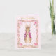 Peter the Rabbit com um convite de primeiro aniversario cor-de-rosa com detalhes de convite personalização.