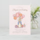 Celebre o primeiro aniversário da sua menina com este encantador convite a Peter Rabbit, com o belo coelho segurando um pacote festivo de balões cor-de-rosa e laranja - um marcado com um grande número "1". Vestido em seu icônico chapéu azul de casaco e partido, Peter Rabbit é cercado por presentes envoltos e dois adoráveis amigos de ratos em chapéus de festa, todos ilustrados no estilo aquarela suave. Os borrifadores de Confetti acrescentam um toque alegre contra o fundo da rosa claro, fazer esse design perfeito personalizável para os aniversários de primavera, fãs de Beatrix Potter ou comemorações de jardim balnear.