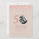 Convite Photo 50th Birthday Rose Gold Confetti Champagne