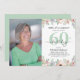 This surprise 60th birthday party invitation features space for a vertical photo and is accented with a soft pastel watercolor floral frame across the top and bottom. The design combines modern typography with trendy calligraphy, creating a refined and stylish look—perfect for celebrating a special woman’s milestone birthday.
