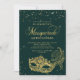 Convite Photo Green Gold Glitter Masquerade Quinceañera