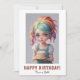 Convite *PHOTO NAME Birthday Girl Cake Red Blue Hair