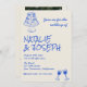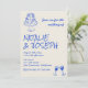 Convite Photo QR Code Hand Drawn Blue Cake Bows Wedding