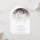 Modern Photo Space for Guest Name QR Code Wedding Arch Shape. Fully editable with a QR code to your wedding website on the back so your guests can RSVP and see all the details online without the need for separate enclosures. Easily personalise the text and replace the sample photo with your own favorite.