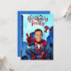Swing into action with this Spider-Man Photo Superhero Birthday Invitation! Perfect for your little hero's big day, this invitation features a vibrant comic book city skyline and a fun superhero body template where you can easily add your child's face. Whether he's turning 7 or any age, this personalized card sets the stage for an epic celebration. High-quality print on premium cardstock with clear, bold colors. Simply upload your favorite photo and customize the party details to create a unique keepsake your guests will love!