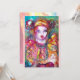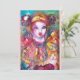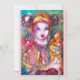 Pintura colorida e vibrante em aquarela em cores brilhantes vermelho, amarelo, azul, branco e roxo inspirada no Carnaval de Veneza e na Commedia dell'Arte.