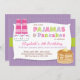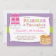 Personalize convites de festas de aniversários do Sleepover dos pijamas e das panquecas desta criança. Pijamas bonitos das características com deslizadores e uma pilha de panquecas. Alguns elementos JDDigiDesign personalizam com seus detalhes da festa de aniversário.