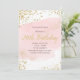 Convite Pincelada de aquarela com rubor rosa brilho dourad