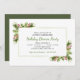Este convite de festas de janto de Natal apresenta agulhas de pinheiro pintadas com aquarela destacadas com bagas vermelhas em fundo branco. Este convite é muito genérico e pode ser aplicado a festas de negócios ou familiares.