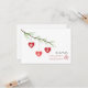Um convite de casamento com uma ilustração de três corações vermelhos pendurados num ramo de pinheiro. Personalize com as suas iniciais no coração. Personalize o texto na frente e no verso.