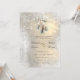 Um galho de pinha com as lanternas e o convite para casamento. Belo convite para o casamento que pode ser personalizado com o seu nome. Selecione o botão "personalizar" para alterar o estilo, a cor e o tamanho da fonte.