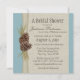 Pinecones e o olhar de burlap sobre um azul-claro suave neste convite para chá ou noiva bonito. Alterar texto para qualquer ocasião. Este convite está totalmente impresso. Não há uma pincona ou uma pincona de verdade.