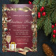 Um convite elegante para festas de Natal com presentes de Natal, vidro de champanhe, chapéu de Papai Noel, pinecones, sinos de Natal, bolas e poinsettia em fundo vermelho. Estes belos convites de Natal são perfeitos para convites de festas de janto de Natal, convites para troca de presentes de Natal, angariadores de fundos de Natal, convites para bolas de férias e outros eventos realizados durante o mês de dezembro. Use apenas os campos modelo para adicionar suas próprias informações de evento.