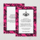 Este cartão de recinto de recepção de casamento com lustre de sala de baile moderno em rosa choque, preto e branco tem um padrão de fundo de rolos rosa e preto que combina com o convite de casamento mostrado abaixo. Você também pode usá-lo como um cartão de registro de presente, um cartão de direções ou acomodações, um cartão de poço de desejos ou site de casamento, um pequeno cartão de resposta ou um cartão de informações de casamento, alterando o texto de acordo. O tipo de texto e papel são totalmente personalizáveis. Se você precisar de outros itens correspondentes, envie um e-mail para niteowlstudio@gmail.com.