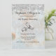 Cartão de Convite Plano de Aniversário de Casamento de Prata de 25 Anos Chic e Elegante, com anéis de casamento de platina em um belo fundo celestial com pingentes de brilho de prata falsa caindo do topo. Todos os detalhes da tipografia decorativa são fáceis de personalizar completamente. Um design moderno e sofisticado com um toque de glamour cintilante.