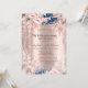 Flores azuis com pingos de brilho em um fundo de rosa dourado.