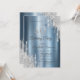 Um design moderno, chique e glamoroso com pingos de purpurina prata em um fundo azul metálico.