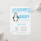 Convite Pinguim Chá de fraldas Blue Boy Snowflake