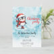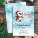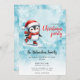 Convites de festas de Natal de na moda Crio com um patinador de gelo agudo de pinguim em um chapéu vermelho de Papai Noel, cachecol e skates de figura. Este convite festivo de Natal é desenhado sobre um fundo azul de neve com flocos de neve elegantes. O modelo facilita a personalização com o nome, data e hora da sua família, endereço, RSVP e código de vestimenta da festa.