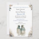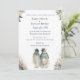 Convites de casamento de casal de pinguim de aquarela fofa sob o treliçado de folhagem verde floral.