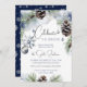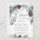 Festa de Natal comemora a época dos pinheiros com cor d'água com pínus cones prateados flocos de neve com convite para modelo instantâneo.