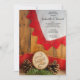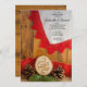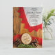 Convide convidados para uma festa de janto pré-casamento homenageando a noiva e o noivo com o Janto informal e elegante Rustic Pines e Red Lace Casamento no inverno. Este encantador janto de ensaio de pastoreio de madeira personalizado apresenta uma fotografia típica de uma fatia natural de madeira, com a palavra LOVE queimado, cones de pínus castanhos, ramificação de pinheiros verdes, fita de arromba vermelha e lace vermelho de vintage com um fundo de madeira castanho. O inspo perfeito para o seu evento de celebração.
