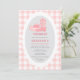 Yeehaw, little cowgirls! Celebrate your baby girl’s first birthday in style with this adorable Pink 1st Rodeo Birthday Party Invitation. Featuring a soft pink and white gingham background, western-style lettering, and a cute cowgirl boot and hat, this invitation is perfect for your little one’s first rodeo birthday bash!