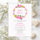 This cute and whimsical baby shower invitation features watercolor hearts in pink and gold with flowers. The text combines handwritten script and serif fonts for a stylish and modern look. This is perfect for a spring or summer baby shower.