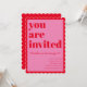 Convite Pink and Red Modern 21st Scalloped Birthday Party
